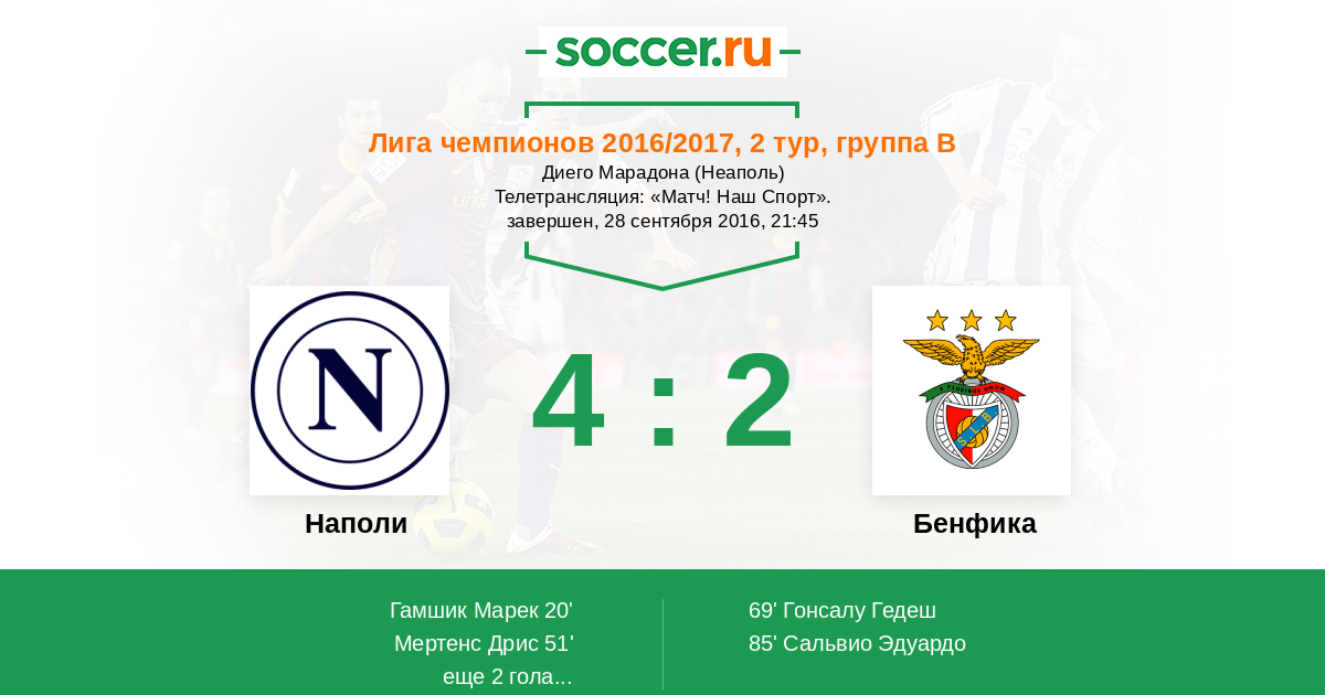 Протокол матча Наполи против Бенфика