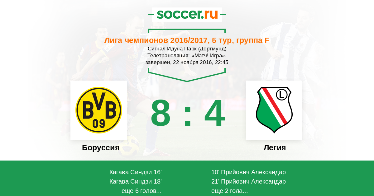 32' (5:2) Ройс Марко (11) (Кагава Синдзи (23))