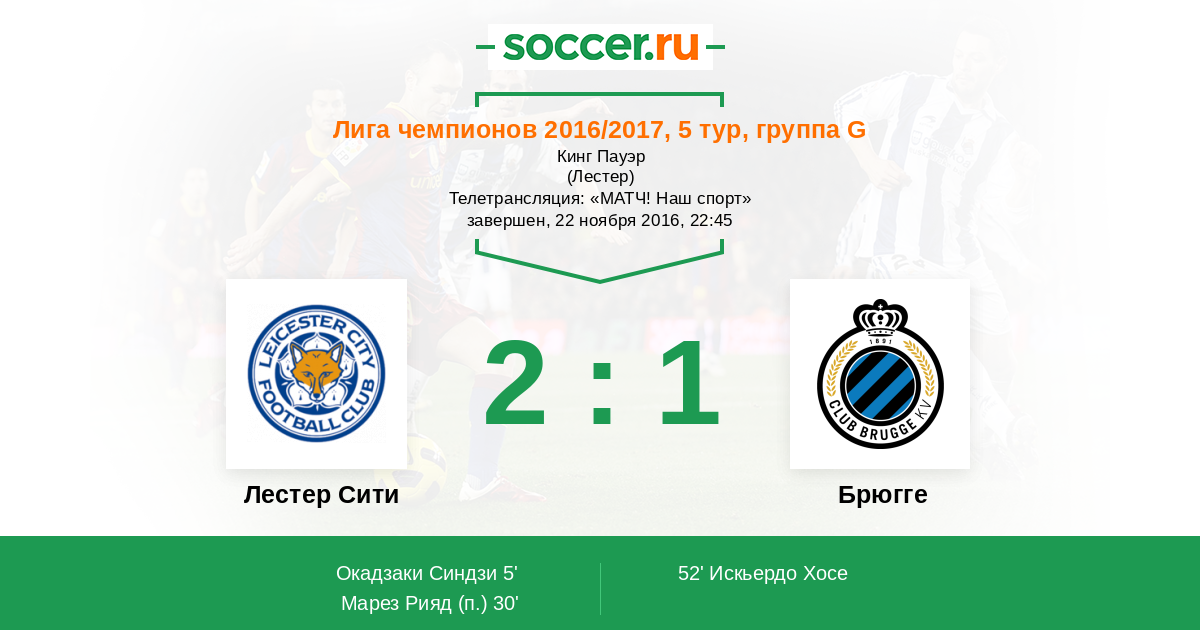 Протокол матча Лестер Сити против Брюгге