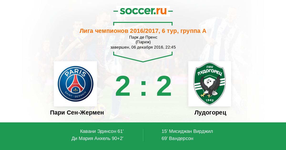 Протокол матча Пари Сен-Жермен против Лудогорец