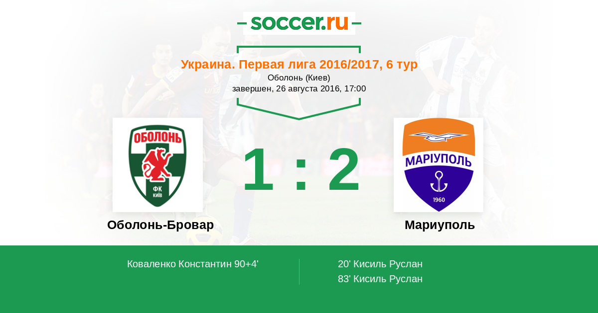 Протокол матча Оболонь-Бровар против Ильичевец