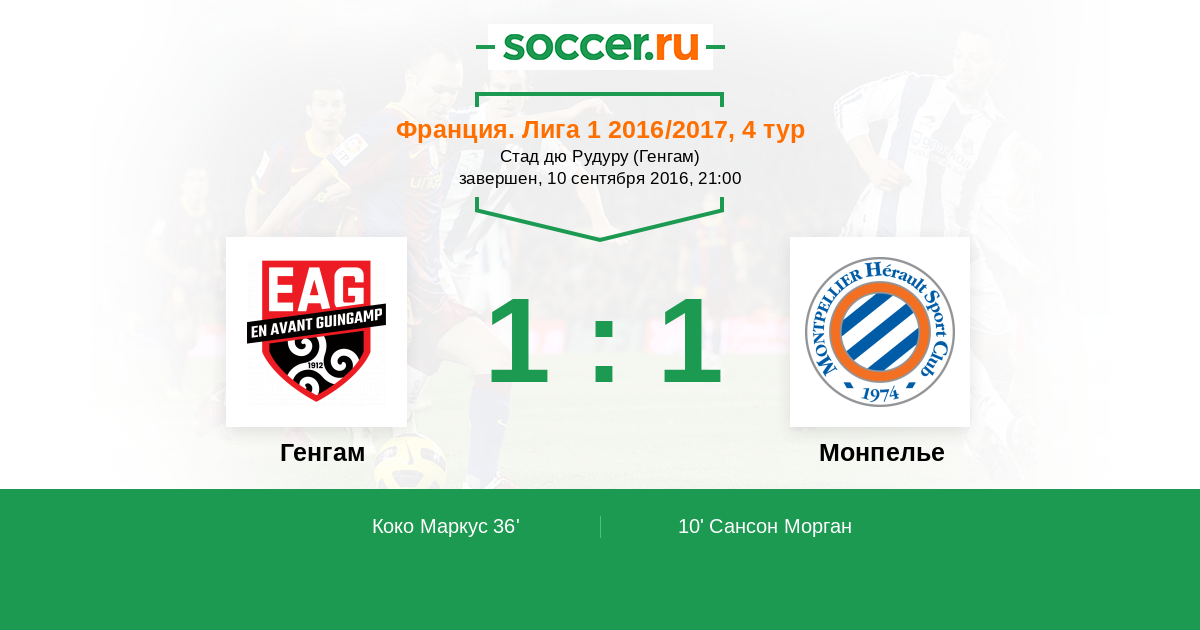 Протокол матча Генгам против Монпелье