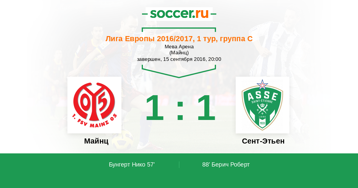 Протокол матча Майнц против Сент-Этьен