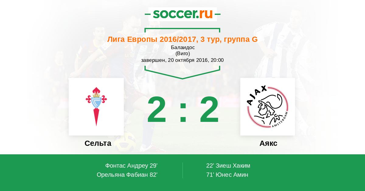 Протокол матча Сельта против Аякс