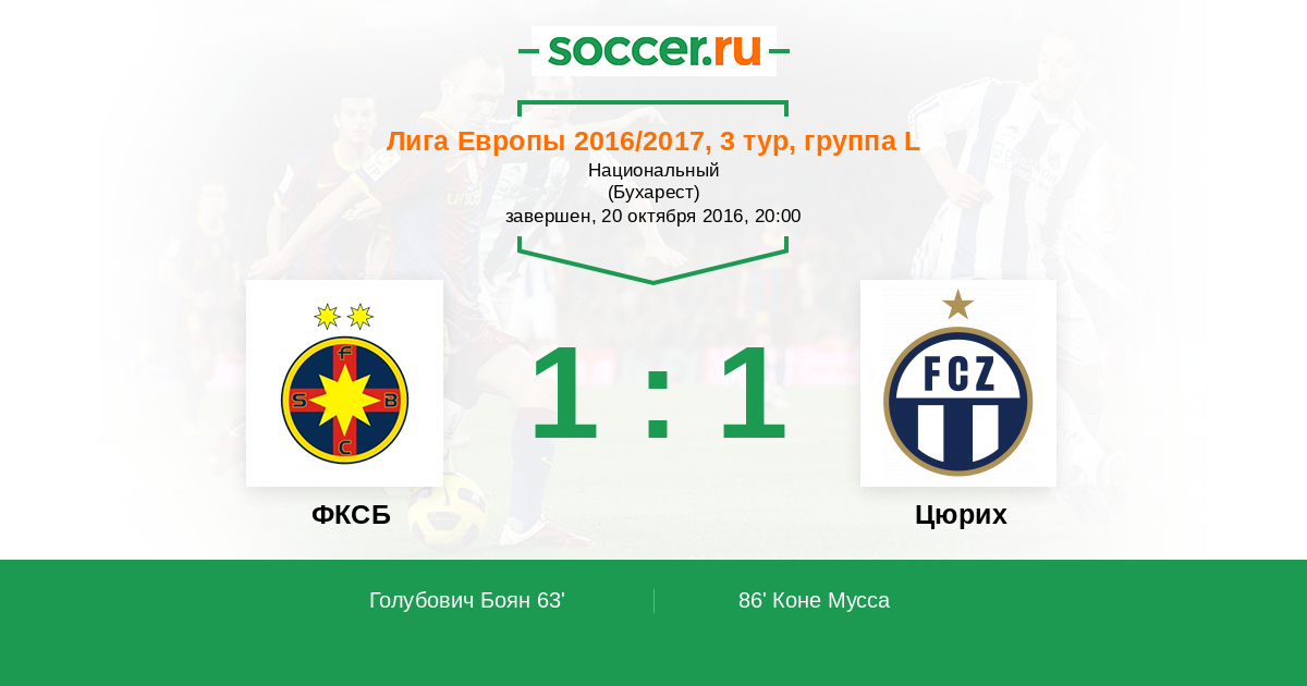 Протокол матча Стяуа против Цюрих