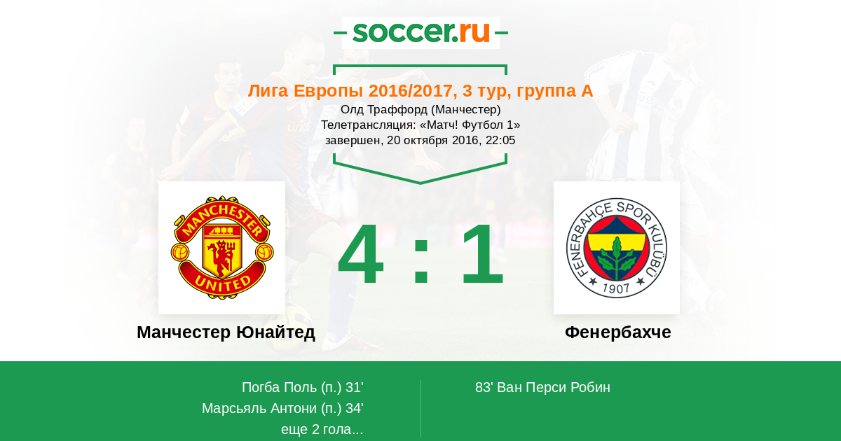 Протокол матча Манчестер Юнайтед против Фенербахче