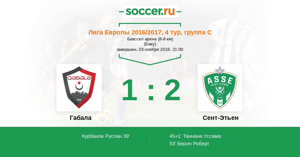 Протокол матча Габала против Сент-Этьен