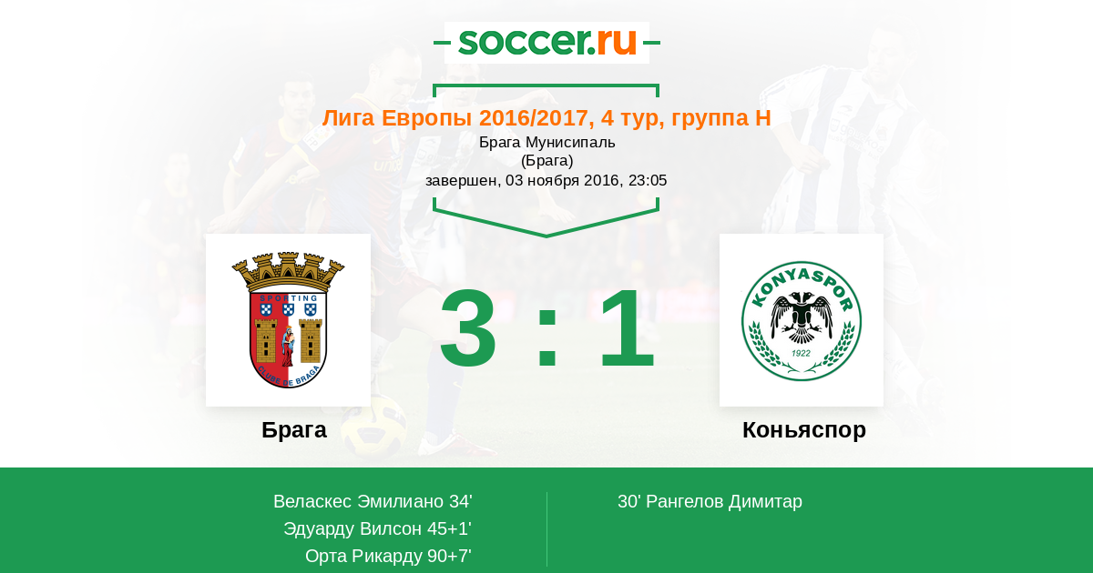 Протокол матча Брага против Коньяспор