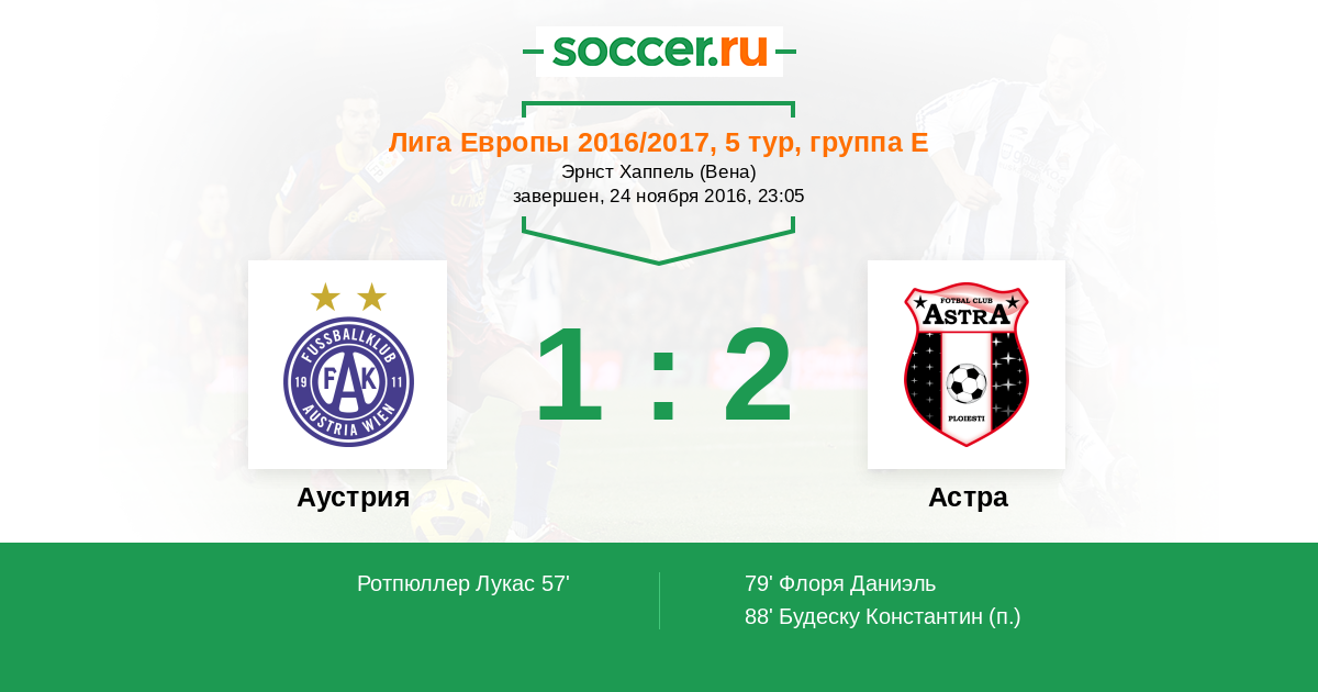 Протокол матча Аустрия против Астра