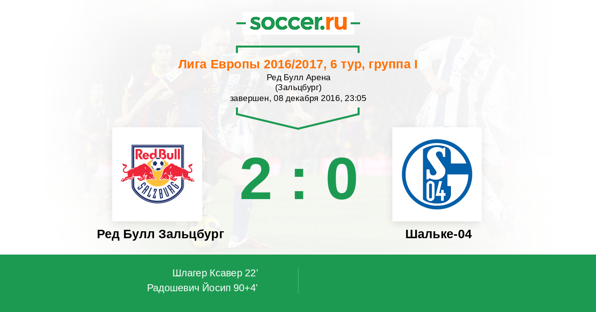 Протокол матча Ред Булл Зальцбург против Шальке-04