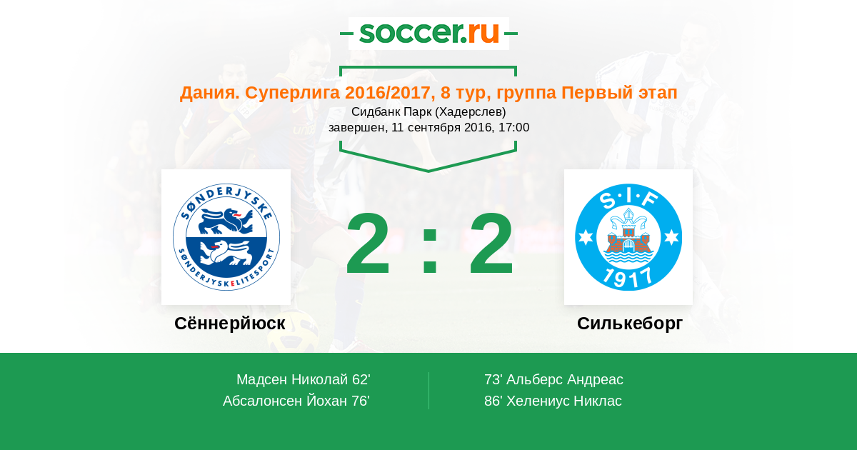 Протокол матча Сённерйюск против Силькеборг