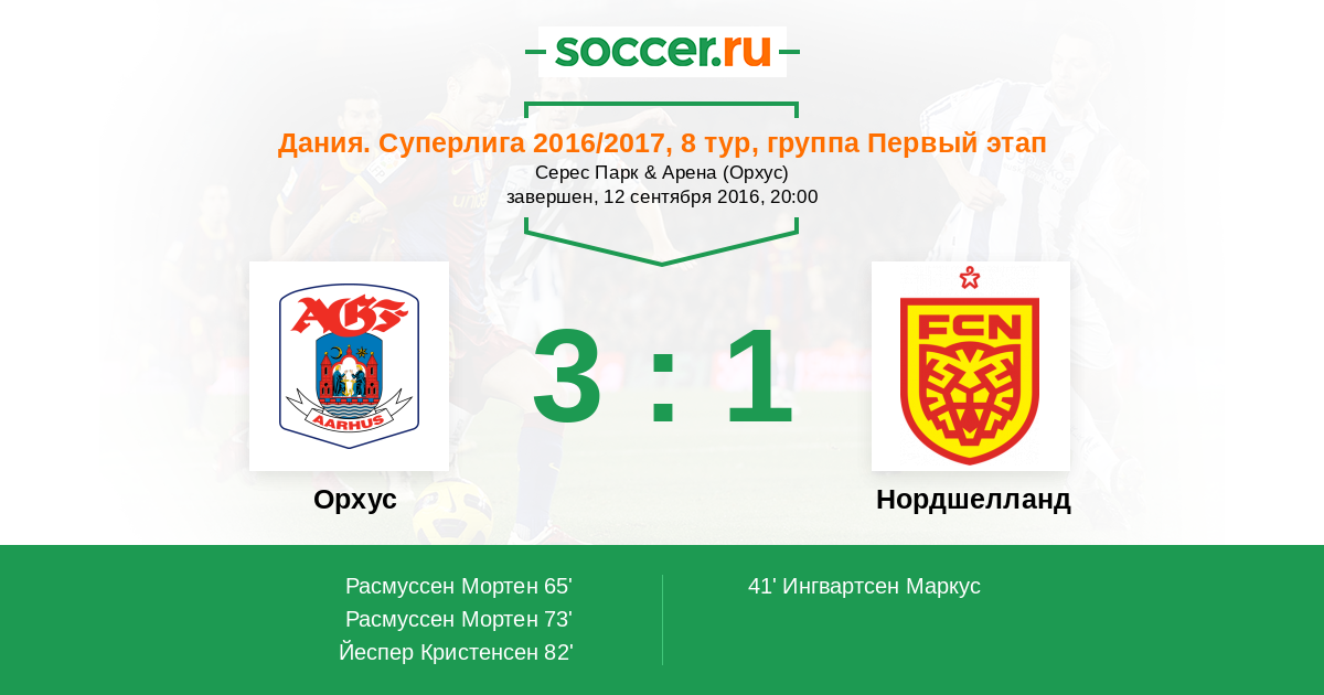 Протокол матча Орхус против Нордшелланд
