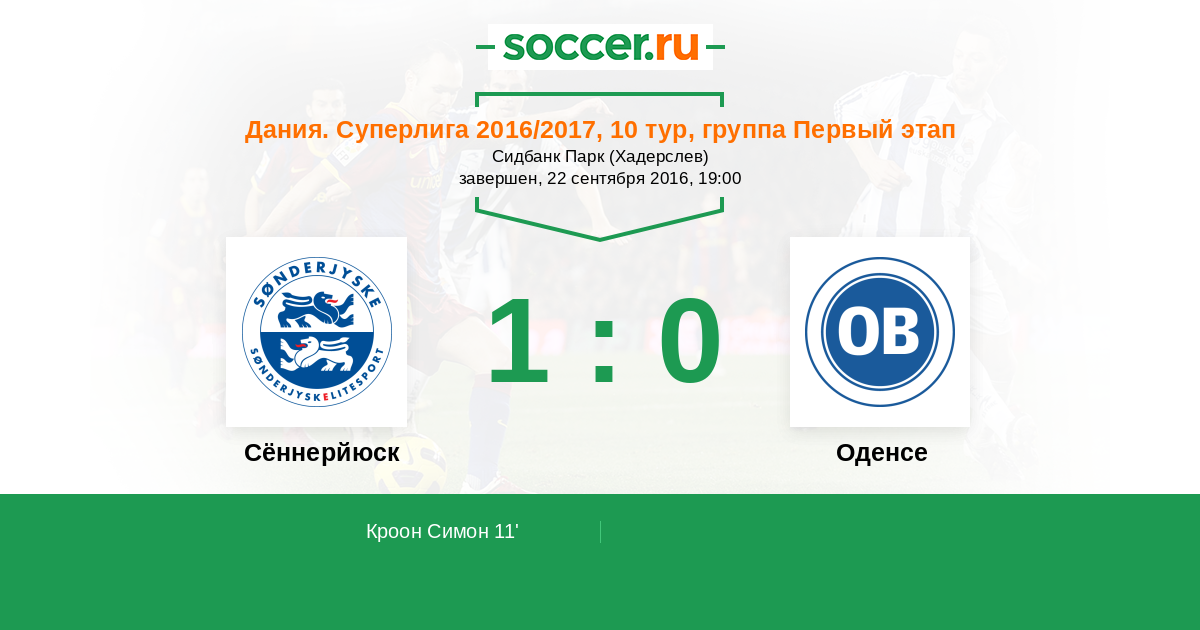 Протокол матча Сённерйюск против Оденсе