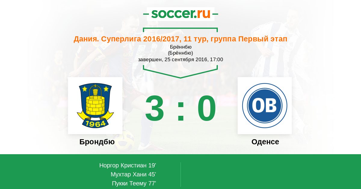Протокол матча Брондбю против Оденсе