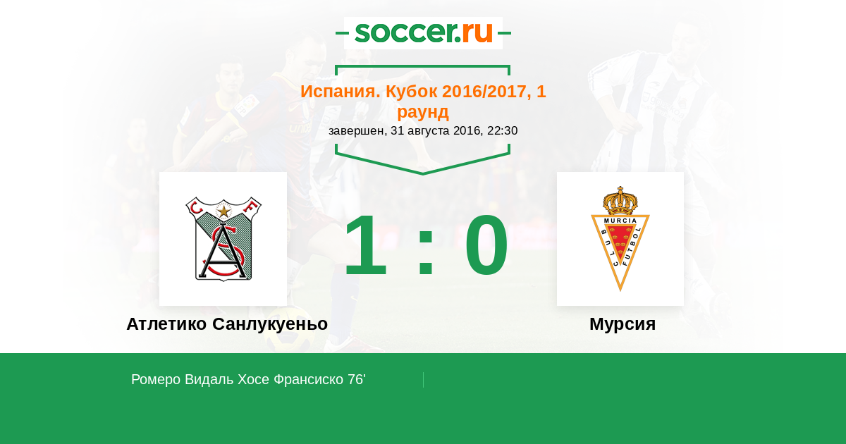 Протокол матча Атлетико Санлукуеньо против Мурсия