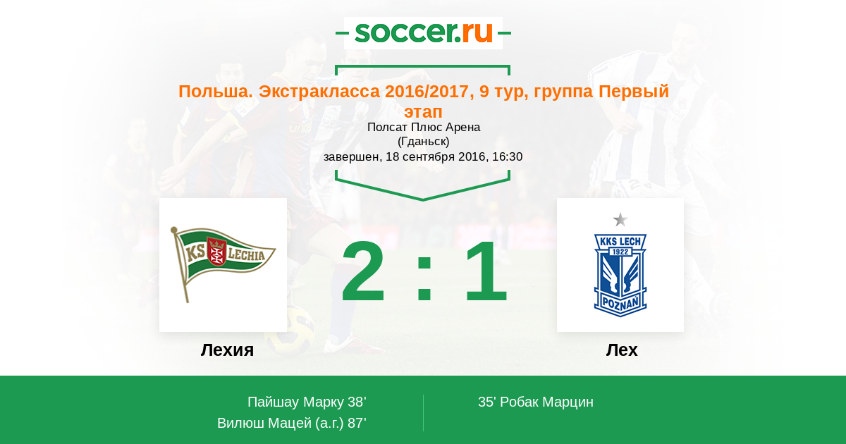 Протокол матча Лехия против Лех