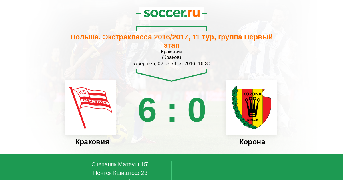 Протокол матча Краковия против Корона