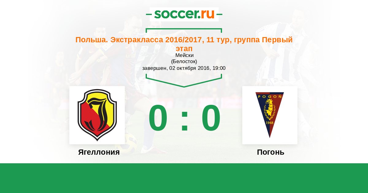 Протокол матча Ягеллония против Погонь