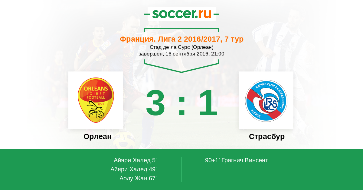 Протокол матча Орлеан против Страсбур
