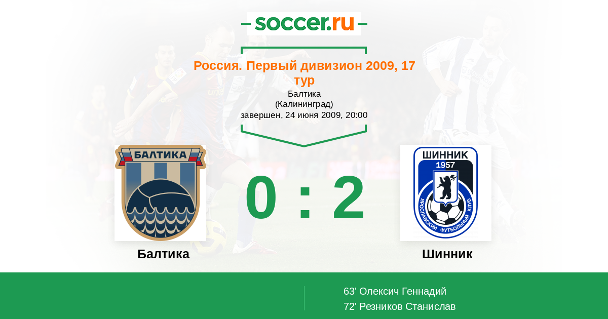 Протокол матча Балтика против Шинник