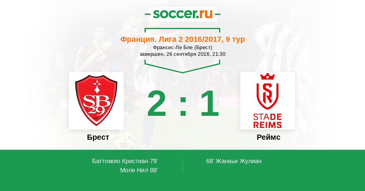 Протокол матча Брест против Реймс