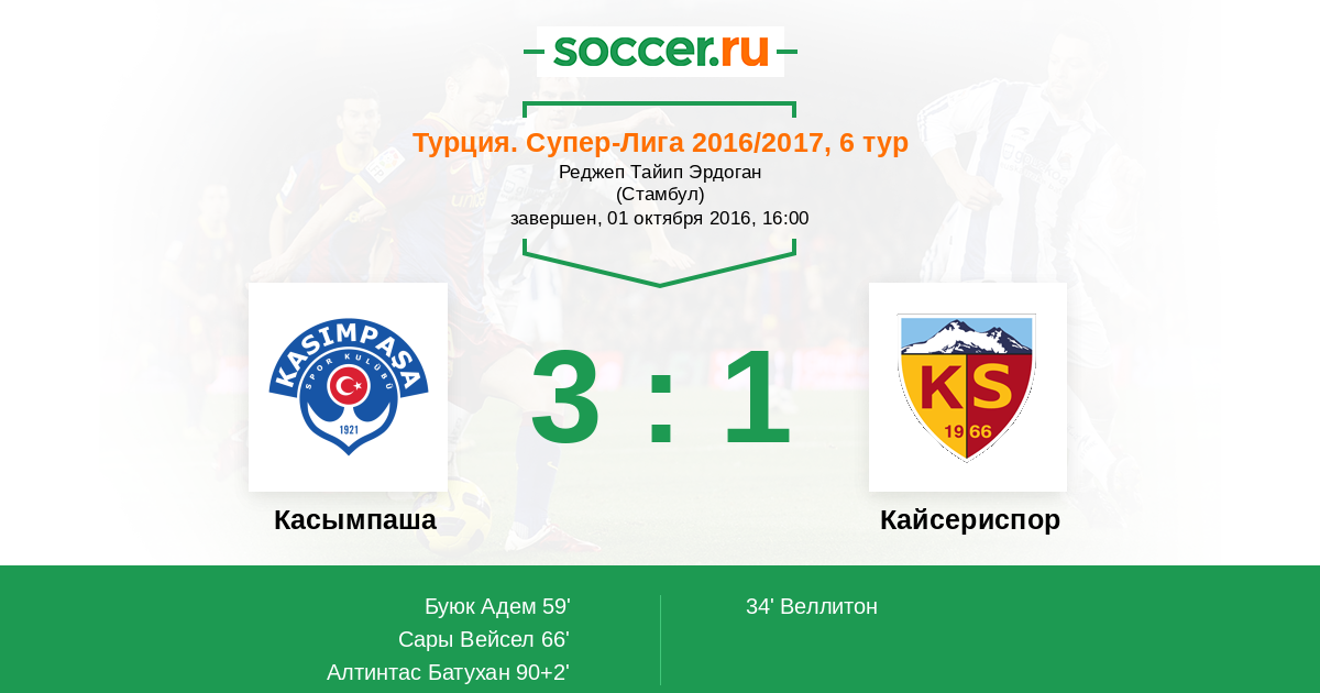 Протокол матча Касымпаша против Кайсериспор