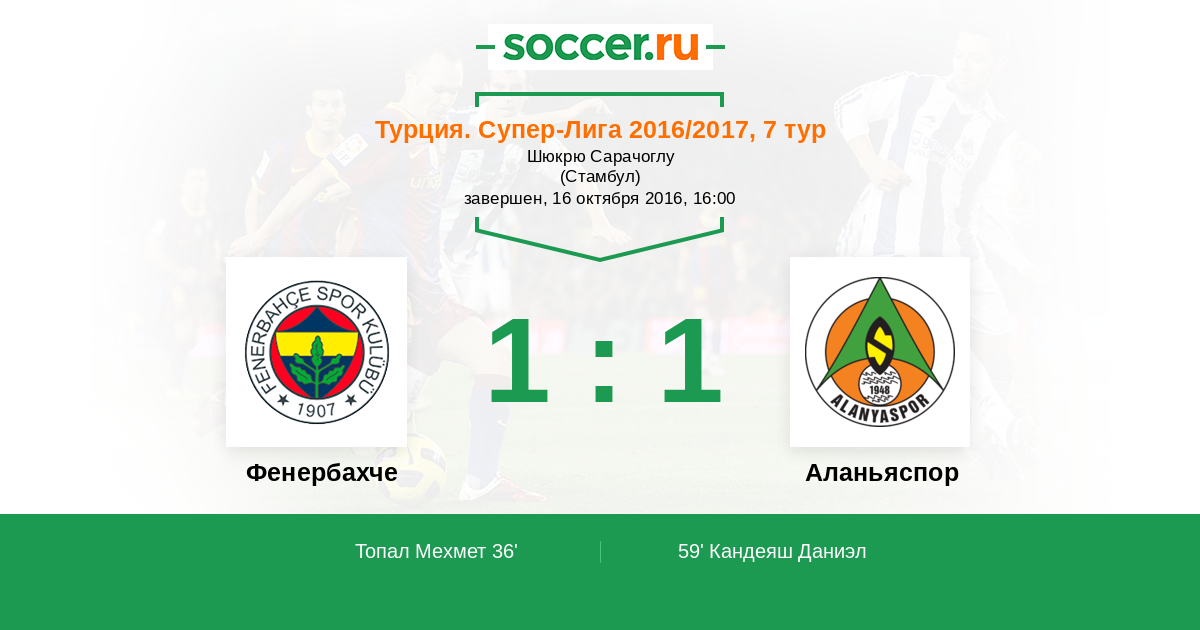 36' (1:0) Топал Мехмет (5) (Потук Алпер (7))