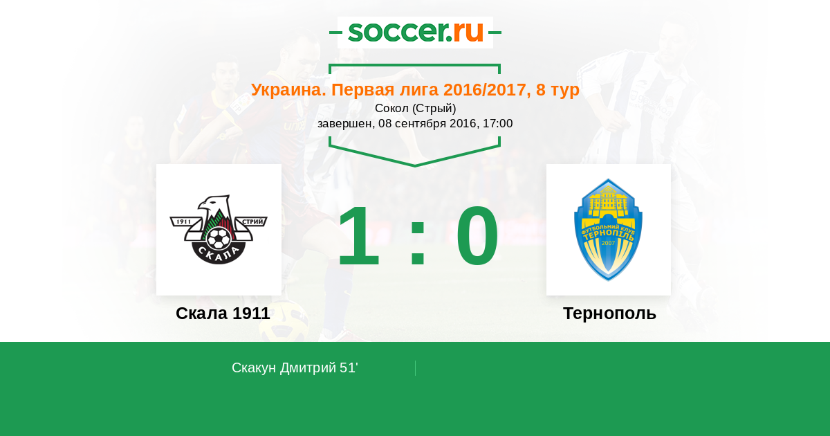 Протокол матча Скала 1911 против Тернополь