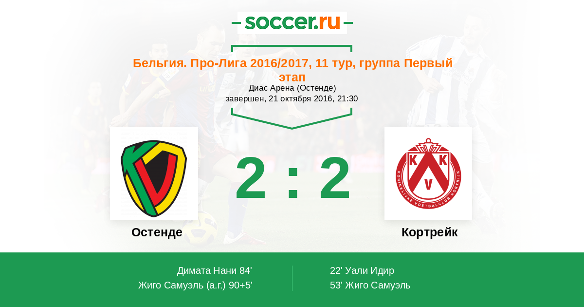 Протокол матча Остенде против Кортрейк
