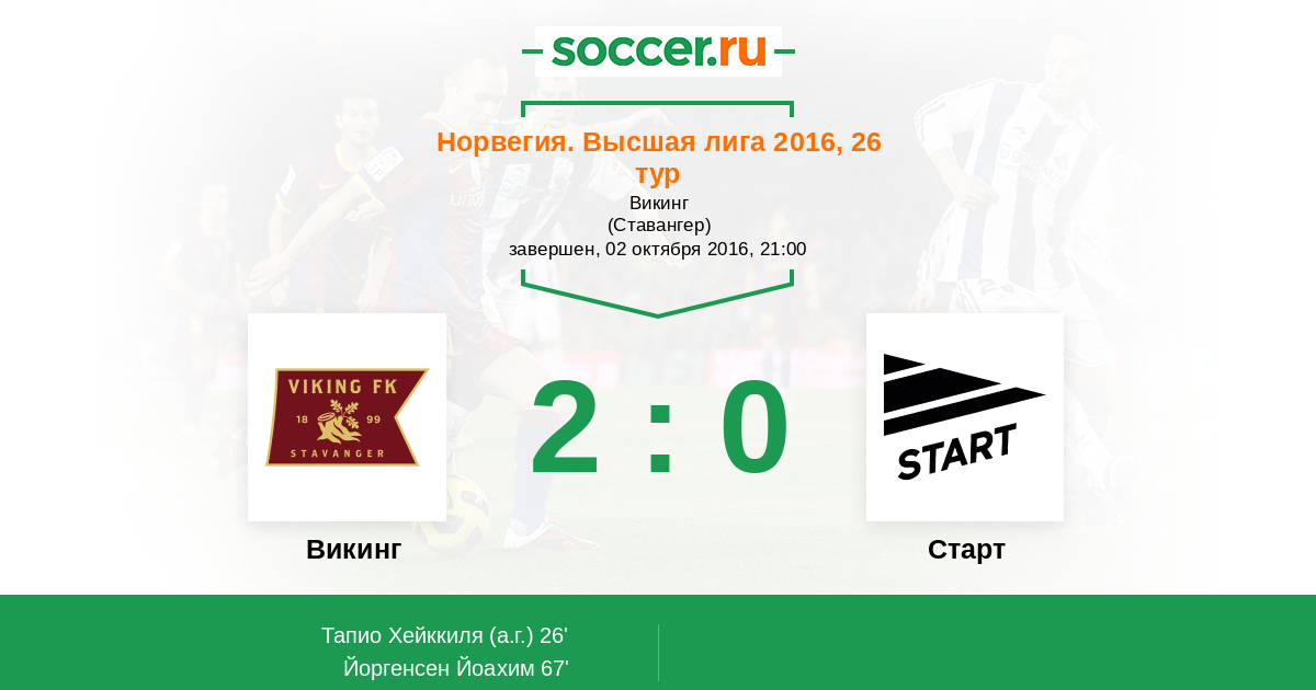 Протокол матча Викинг против Старт