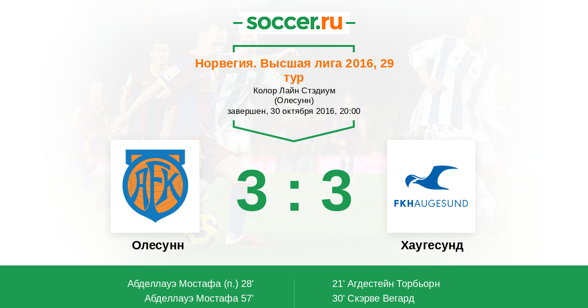 Протокол матча Олесунн против Хаугесунд