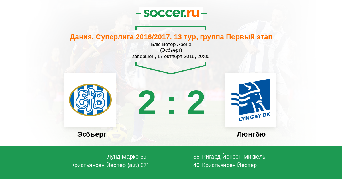 Протокол матча Эсбьерг против Люнгбю