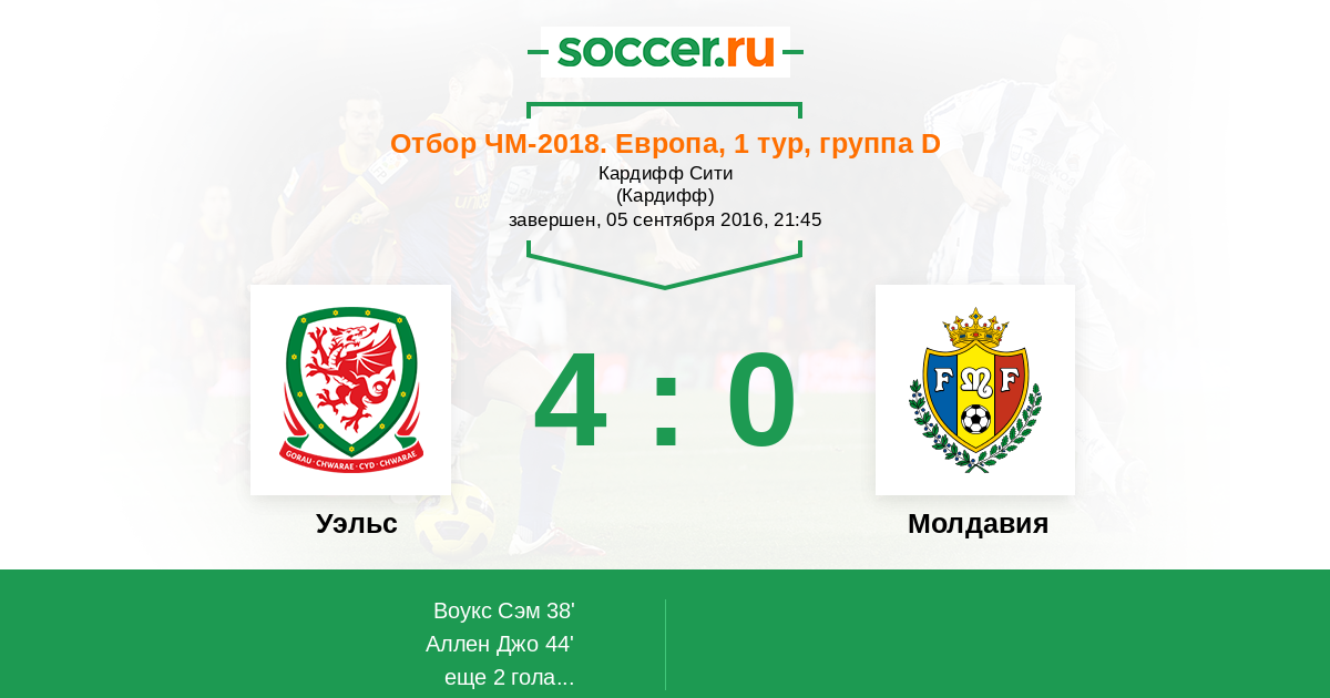38' (1:0) Воукс Сэм (18) (Бэйл Гарет (11))