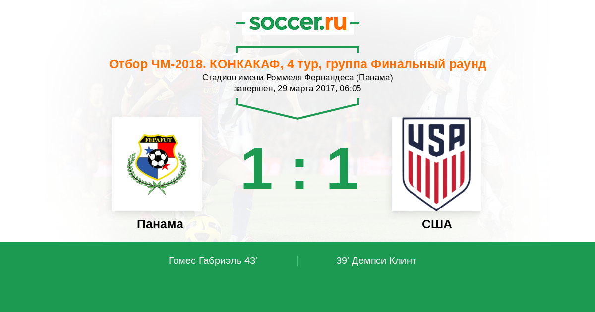 Протокол матча Панама против США