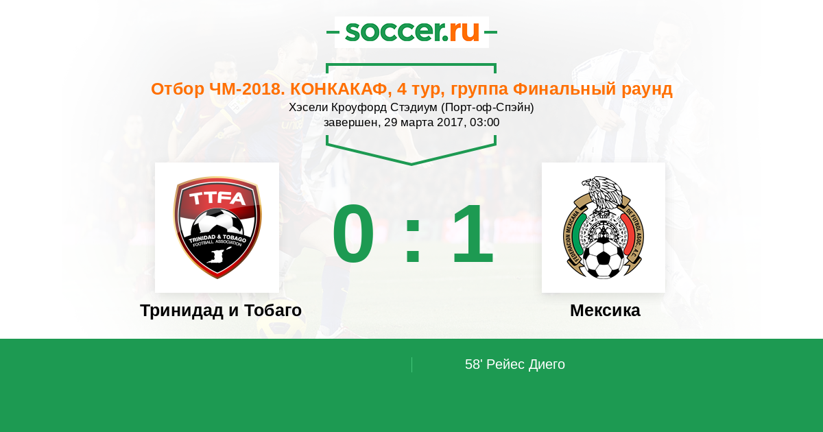 Протокол матча Тринидад и Тобаго против Мексика