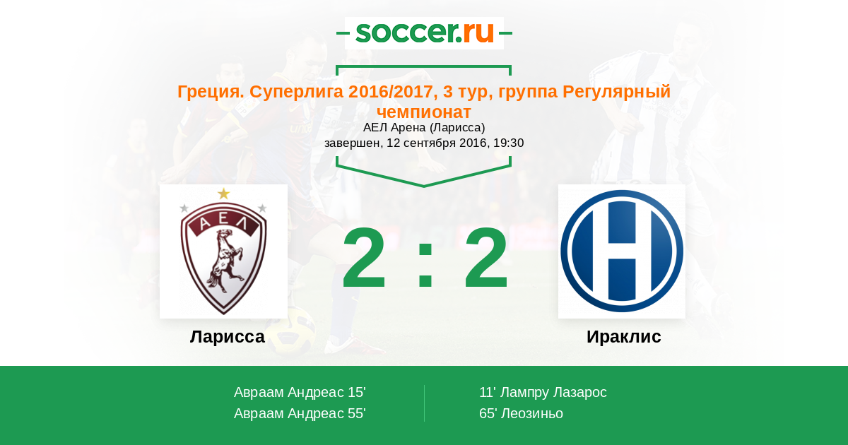 Протокол матча Ларисса против Ираклис