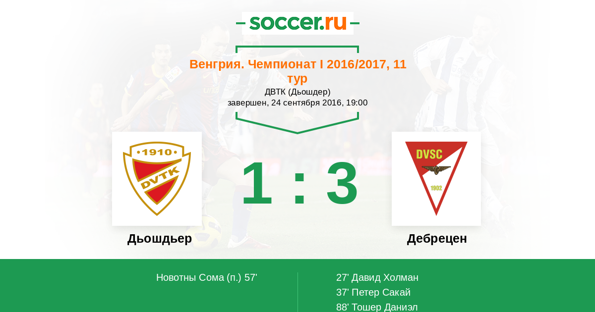 Протокол матча Дьошдьер против Дебрецен