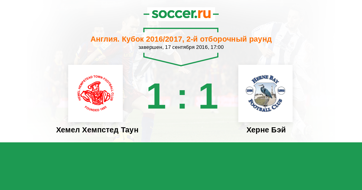 История матча Хемел Хемпстед Таун против Херне Бэй