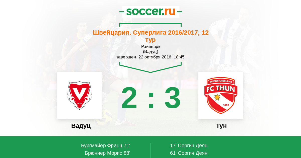 Протокол матча Вадуц против Тун