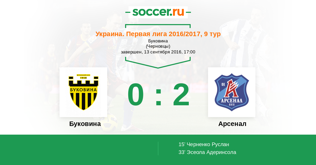 Протокол матча Буковина против Арсенал