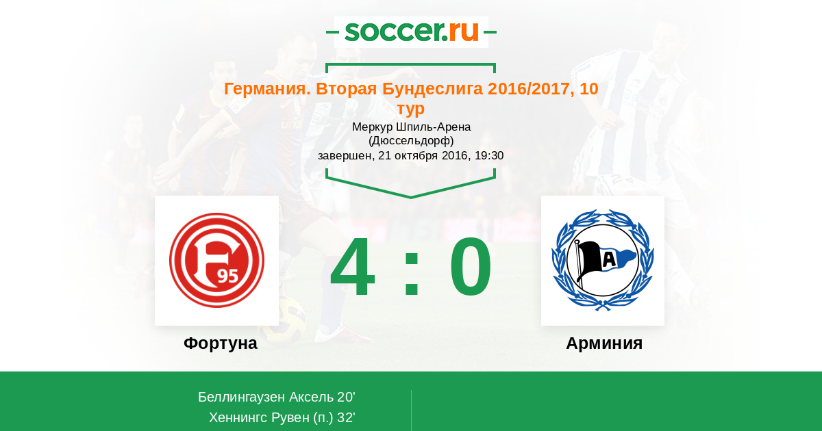 Протокол матча Фортуна против Арминия