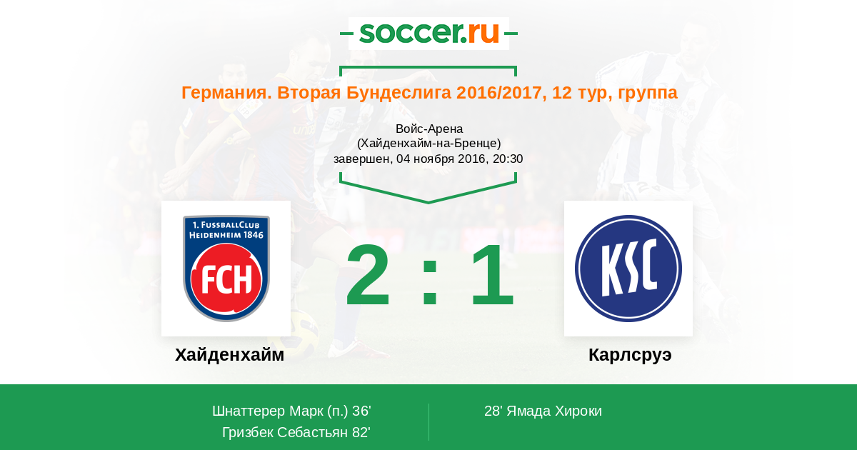 Протокол матча Хайденхайм против Карлсруэ