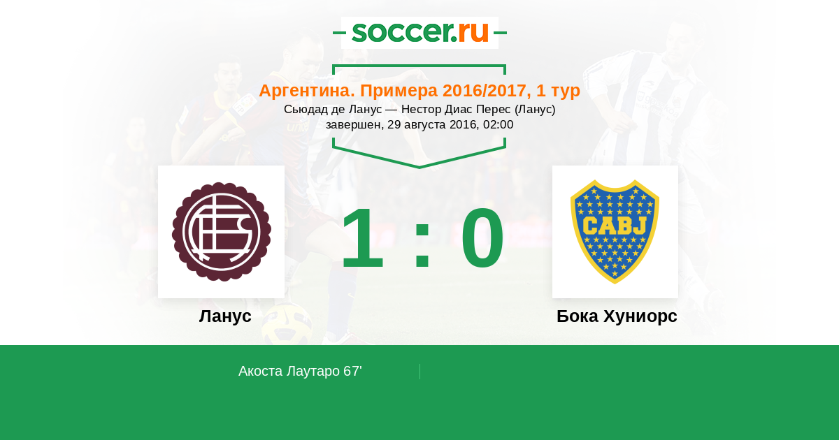 Протокол матча Ланус против Бока Хуниорс