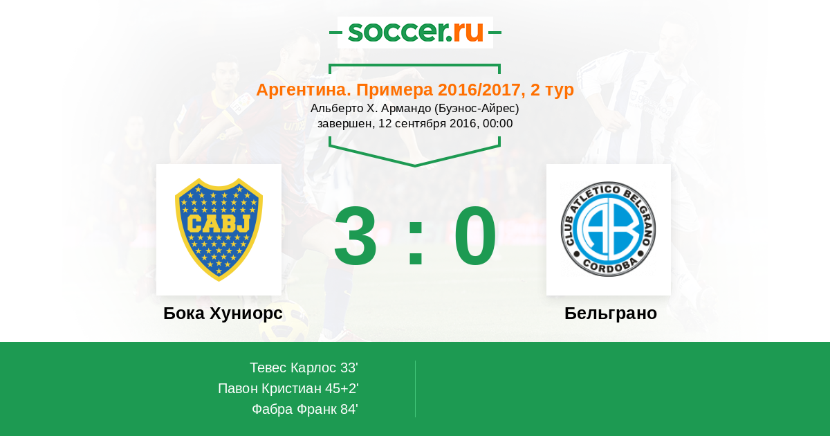 Протокол матча Бока Хуниорс против Бельграно
