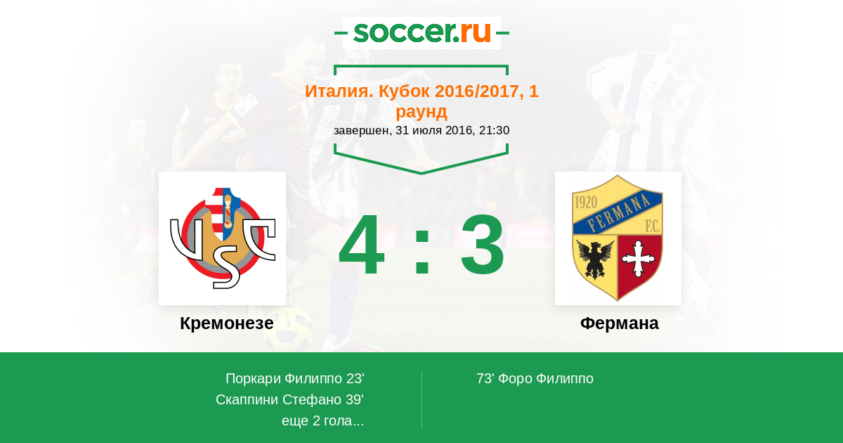 Протокол матча Кремонезе против Фермана