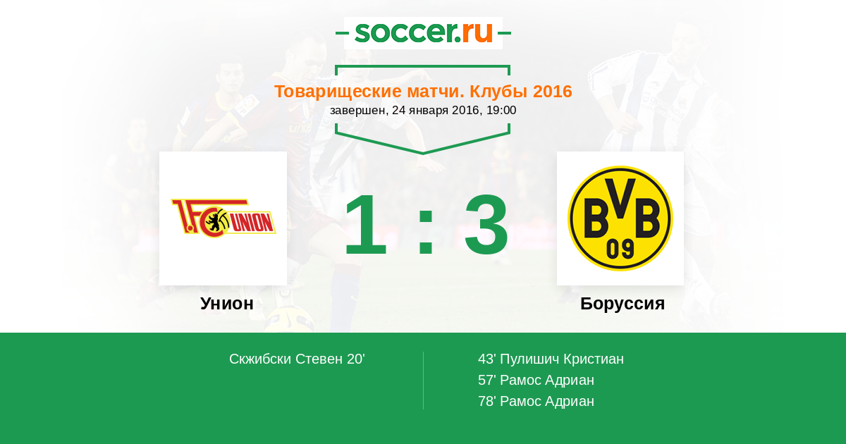 Протокол матча Унион против Боруссия
