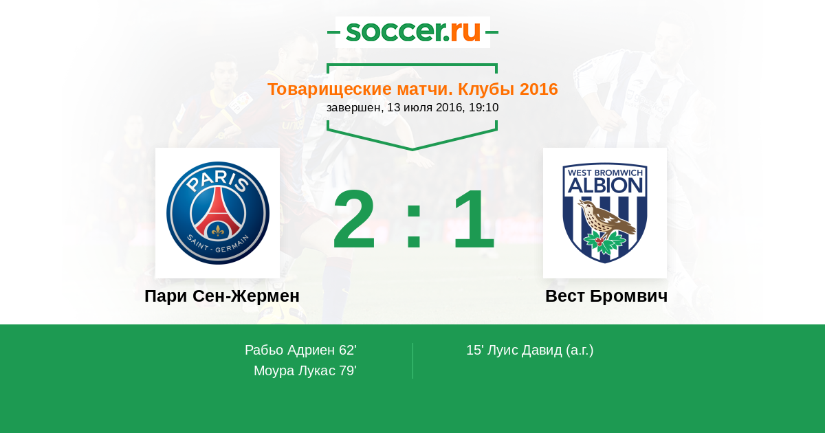 Протокол матча Пари Сен-Жермен против Вест Бромвич