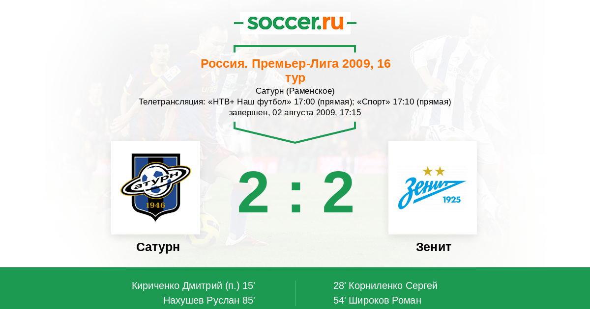 Протокол матча Сатурн против Зенит