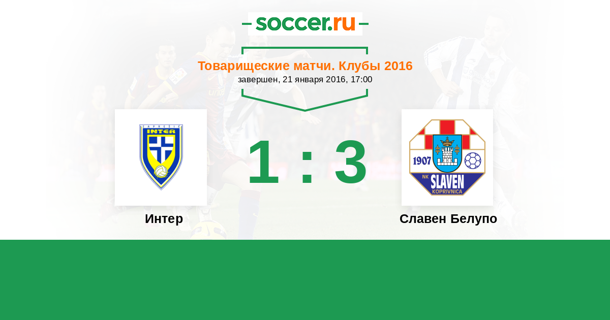 Хорватия. Первая лига 26.02.2016 Интер Логотип футбольный клуб Интер (Запрешич) 2:1 Логотип футбольный клуб Славен Белупо (Копривница) Славен Белупо