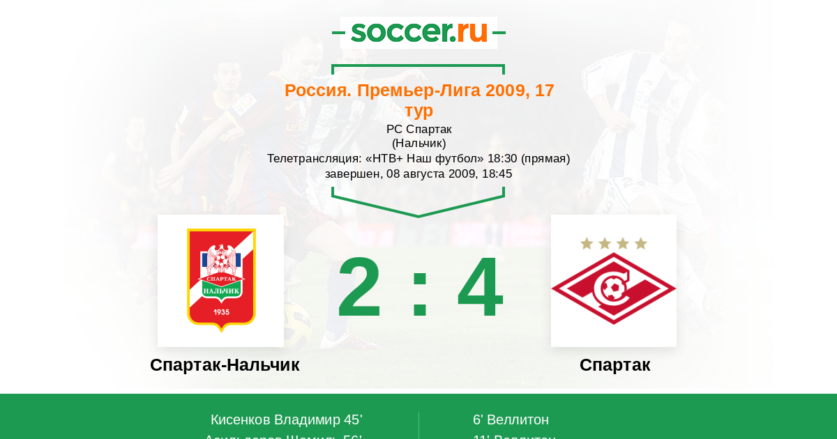 Протокол матча Спартак-Нальчик против Спартак